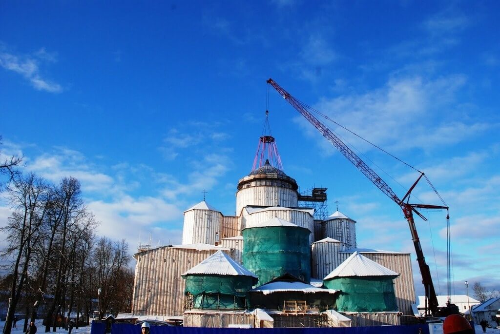 Подъем каркаса купола Воскресенского собора Ново-Иерусалимского монастыря